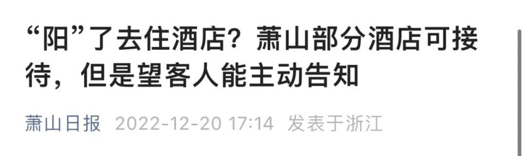另据多家媒体消息,在浙江杭州、安徽合肥等地,部分酒店表示,希望客人能主动告知感染情况,有助于酒店做好消杀,提供限定的服务。