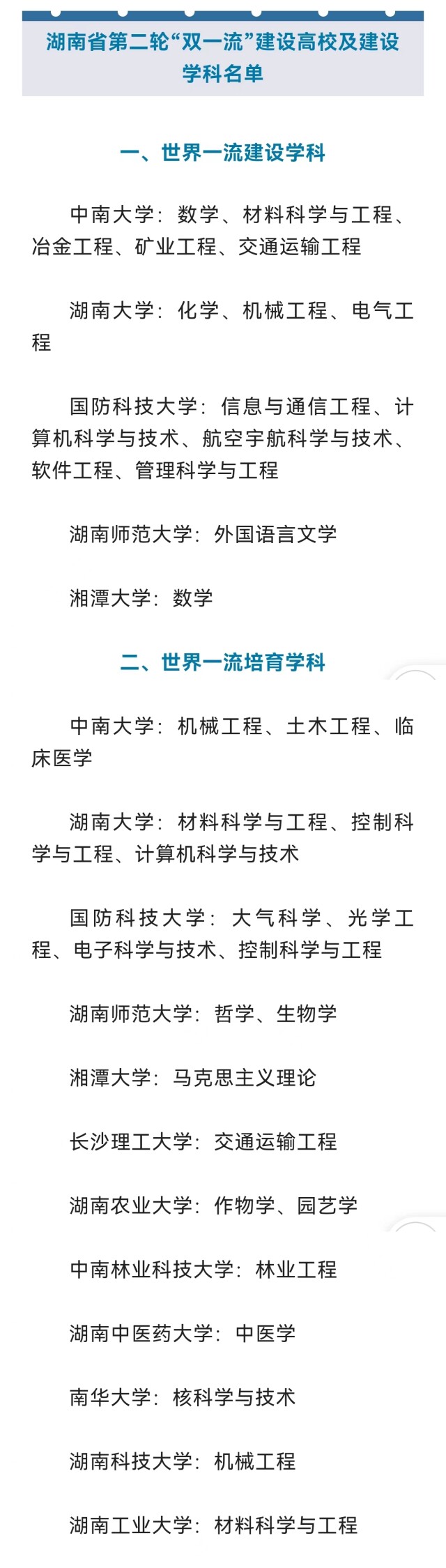 相关报道>>重磅!湖南省新一轮“双一流”建设名单公布