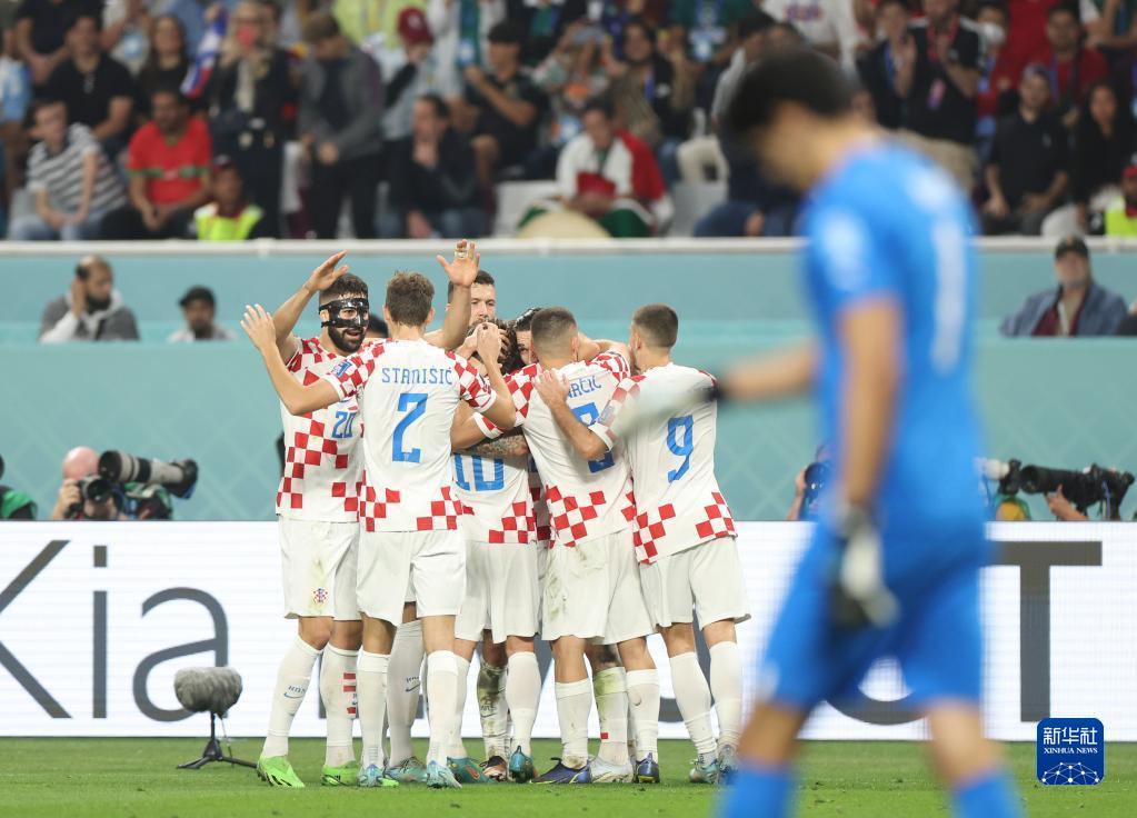 12月17日,克罗地亚队球员在比赛中庆祝进球。新华社记者 贾浩成 摄
