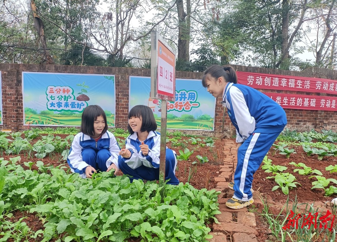 今年初,邵东市城区第一完全小学将校内近200平方米空地修整成“童耕场圃”,再划分成12块小菜地,作为12个班级的劳动实践“责任田”。为了培养孩子们“迎难而上、力争上游”的品质,学校还开展“施肥助长”劳动竞赛。