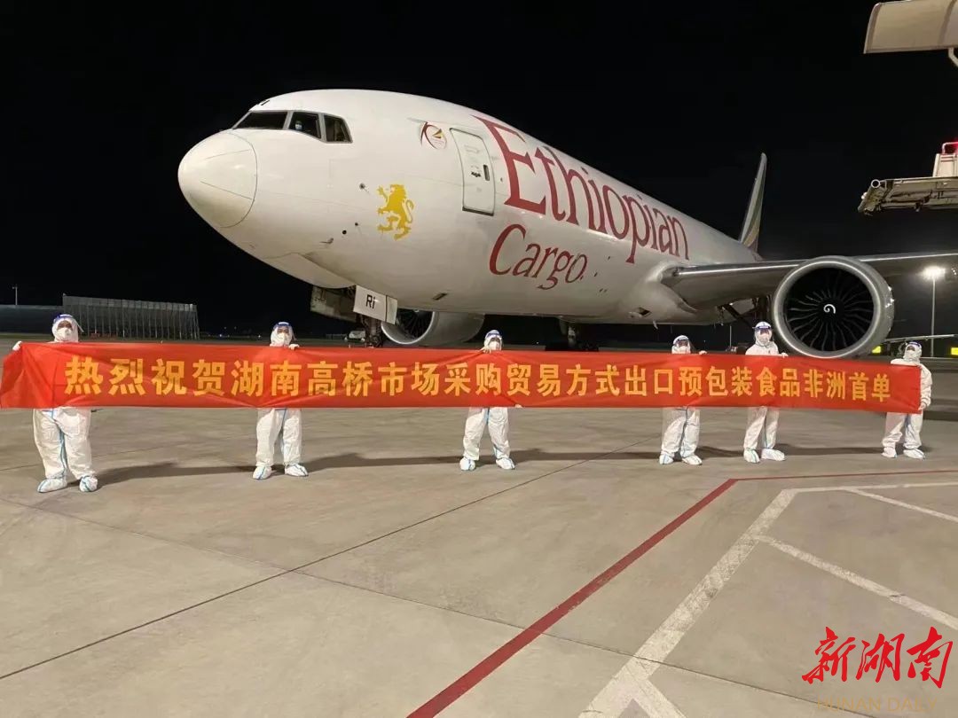 湖南日报·新湖南客户端12月27日讯(记者 欧阳倩)载有预包装食品的飞机昨天从长沙黄花国际机场抵达非洲,这是湖南高桥大市场首次采取市场采购贸易方式出口预包装食品至非洲。