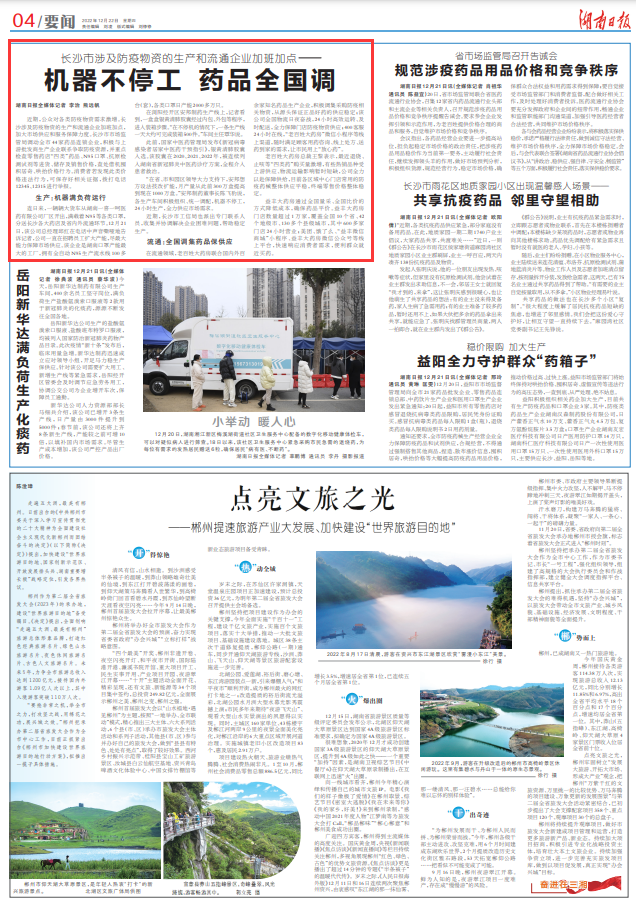 随着“新十条”落地,公众对防疫药品、抗原检测试剂盒、N95口罩等防疫物资的需求激增。长沙涉及防疫物资的生产和流通企业加班加点,加大供应和服务保障力度。长沙市市场监督管理局调动全市44家药品连锁企业,积极与上游批发商生产企业联系争取防疫资源,充分发挥连锁企业执业药师作用,指导老百姓安全用药科学用药,倡导老百姓适当备药不囤药。
