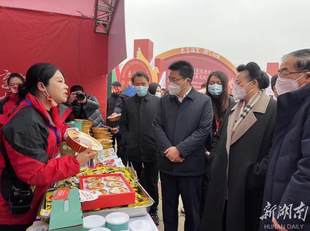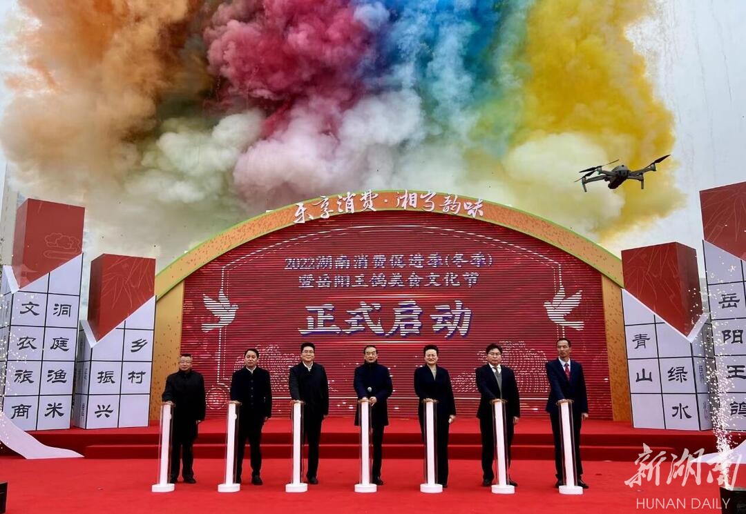 湖南省商务厅二级巡视员王峰,岳阳市副市长魏淑萍,岳阳市商务局局长周和平,岳阳县委书记肖湘晖,县委副书记、县长吴光文等出席。魏淑萍表示,今年1至11月,岳阳市实现社会消费品零售总额1688亿元,同比增长2.9%,增幅居全省第一位,实现了消费回暖向好的预期目标。各承办单位和协办单位力争将本次盛会办成全面释放消费活力的动员大会,形成居民得实惠、企业增效益、市场添活力的共赢局面,来一场双向奔赴、热闹红火的新年盛宴。