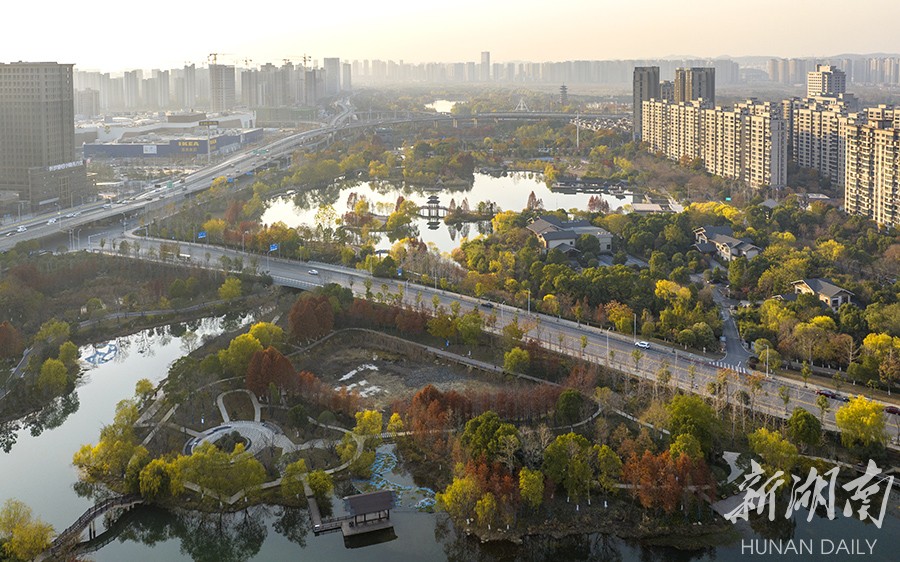 12月24日,长沙洋湖国家湿地公园层林尽染,在冬日暖阳的照耀下,更加美不胜收。近年来,长沙市强化湿地资源的保护和利用,不断增强人民群众的获得感和幸福感。湖南日报全媒体记者 辜鹏博 摄