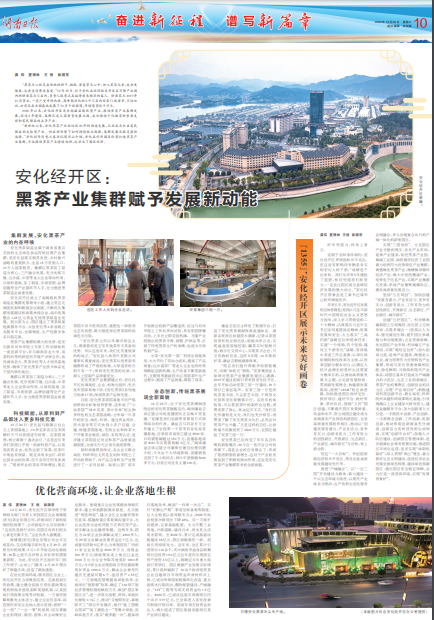 安化经开区成立了高规格的黑茶制造业集群发展领导小组,建立常态化调度机制和联席会议制度,不断优化集群发展路径和政策扶持办法,每年统筹整合1.05亿元资金支持黑茶制造业发展。到目前为止,园区建立了黑茶质量检测服务平台、众创安化等6家省级公共服务平台,仓储物流、生产性服务体系日趋完善。