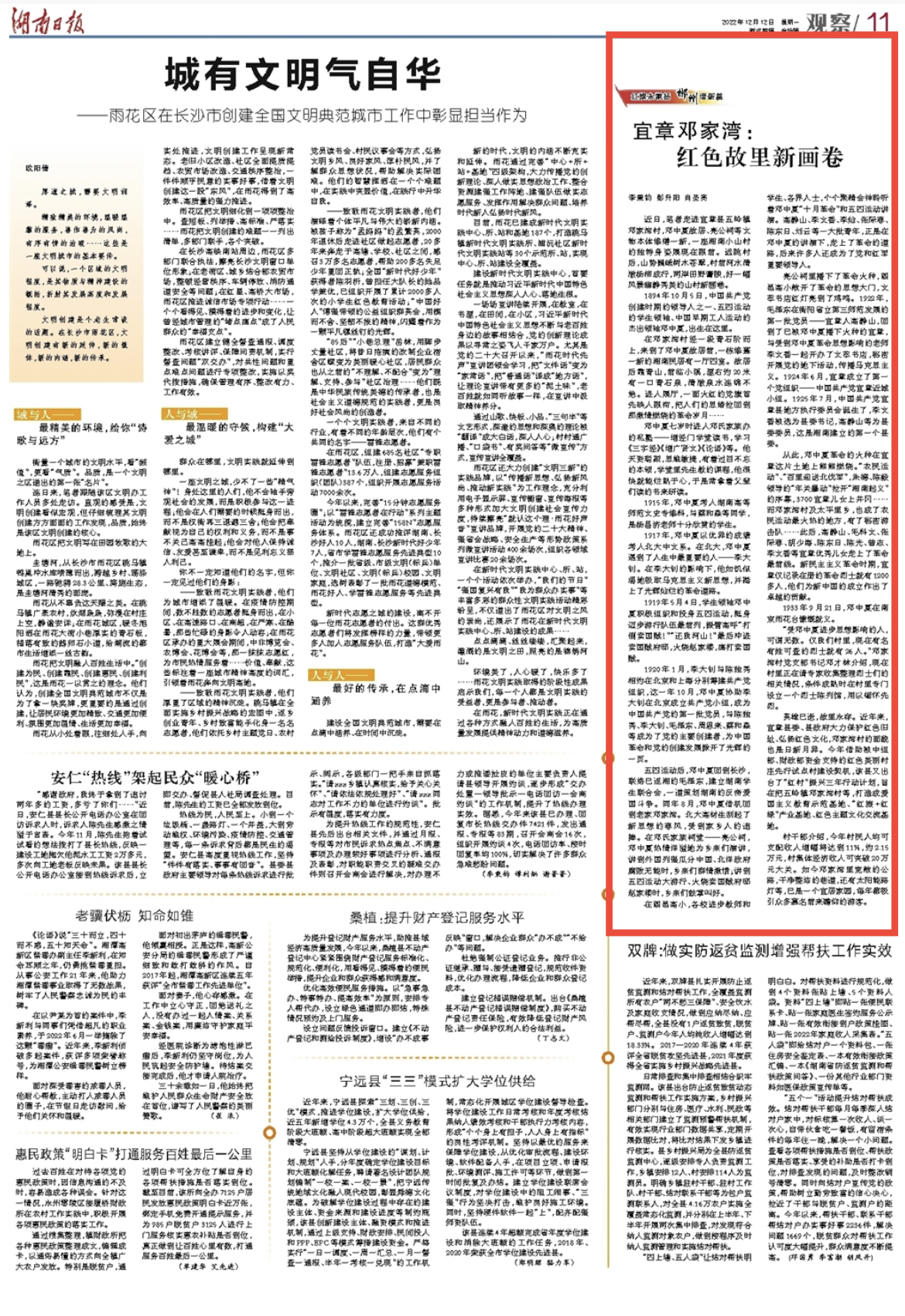 英雄已逝,故里永存。近年来,宜章县委、县政府大力保护红色旧址、弘扬红色文化,邓家湾村的面貌也是日新月异。今年借助被中组部、财政部资金支持的红色美丽村庄先行试点村建设契机,该县又出台了“红村”振兴三年行动计划,旨在把五岭镇邓家湾村等,打造成爱国主义教育示范基地、“红旅+红绿”产业基地、红色主题文化交流基地。