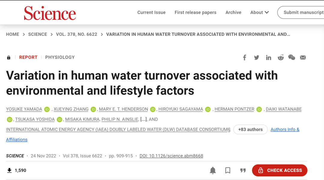 此外,研究人员们收集并分析了参与者的数据,将参与者所在地的温度、湿度和海拔高度等环境因素,与测量的水分周转率、能量消耗、体重、性别、年龄等进行了比较。
