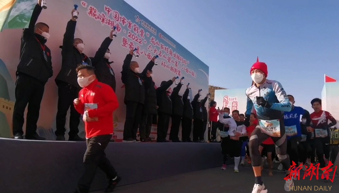 湖南日报·新湖南客户端12月24日讯(记者 向莉君 特约记者 胡域)12月24日上午9时50分,“巅峰湖南·2022”六大名山登山赛八面山站,在湘西土家族苗族自治州龙山县里耶镇八面山海拔1232米的星云居帐篷营地鸣枪开赛。在奥运冠军龙清泉的领跑下,来自全国各地的近千名跑步、徒步爱好者依次越出起跑线,享受云海之巅的激情攀登。