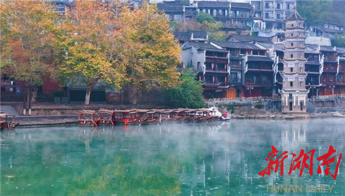 湖南日报·新湖南客户端12月7日讯(特约记者 吴东林)12月6日清晨,湘西土家族苗族自治州凤凰古城沱江河畔晨雾缭绕,青山远黛,近水含烟,轻纱曼舞,云烟氤氲,宛如一幅充满诗意的水墨画卷正徐徐展开。