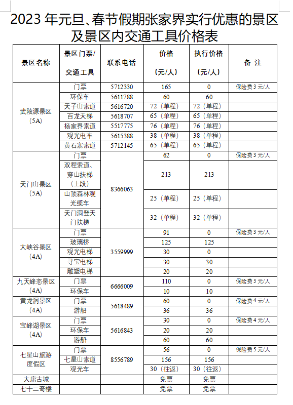 期间,张家界将举办2023年全国新年登高健身大会、首届张家界冰雪旅游节暨张家界七星山滑雪场开板启动仪式、“仙境张家界 欢度元宵节”等九大主题活动,同时出台2023年元旦、春节假期张家界景区实行门票免票优惠,以及酒店优惠、航空团队景区及景区内交通工具“买1送1”优惠、向客源地赠送张家界机票、首趟常益长高铁旅游优惠、观电影《阿凡达2》享受张家界旅游优惠等六大优惠措施。该市还向海内外游客推出了峰林游、奇秀山水游、冰雪温泉游、民俗风情美食游等十条精品旅游线路。