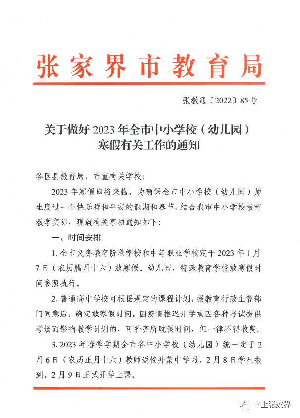 根据《湖南省义务教育课程实施办法(2022版)》和《湖南省普通高中课程方案》等文件精神,结合我市教育教学实际,放寒假时间已明确: