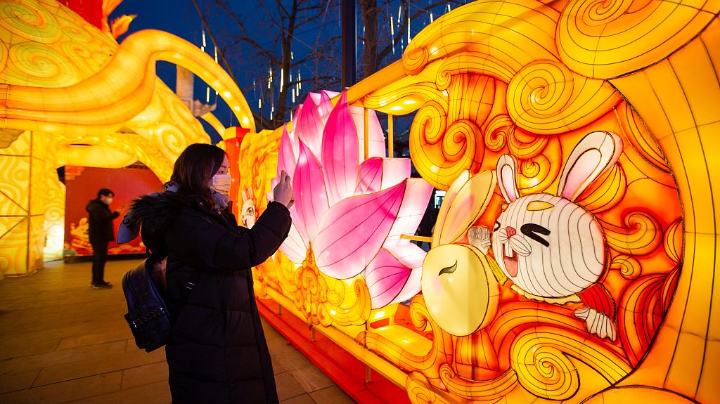 2023年1月1日,南京,游人在夫子庙景区赏灯拍照。 视觉中国 资料图
