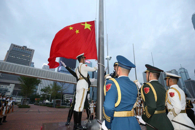 解放军驻香港部队升国旗仪式在中区军用码头举行。驻香港部队供图