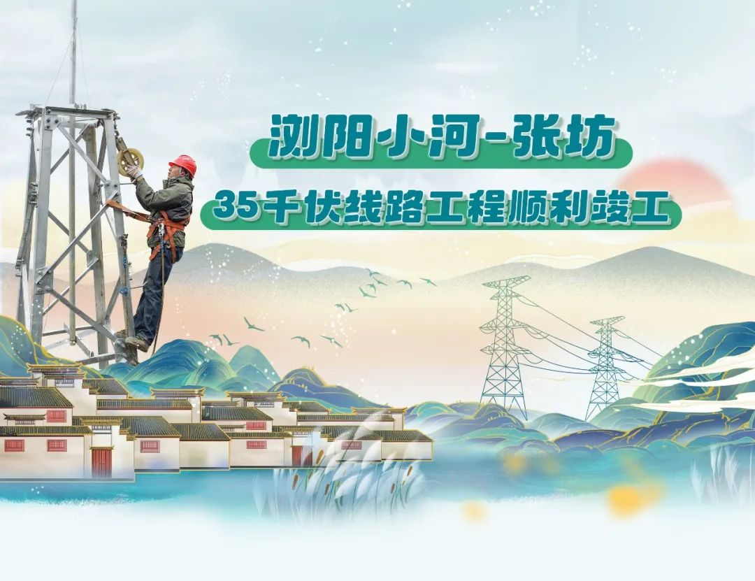 浏阳小河-张坊35千伏线路工程起于新建35千伏小河变电站,止于35千伏张坊变电站。新建单回线路架空部分路径长11.578km,电缆部分路径长0.352km。共计新建杆塔46基;其中直线塔29基,耐张塔15基,终端塔2基。