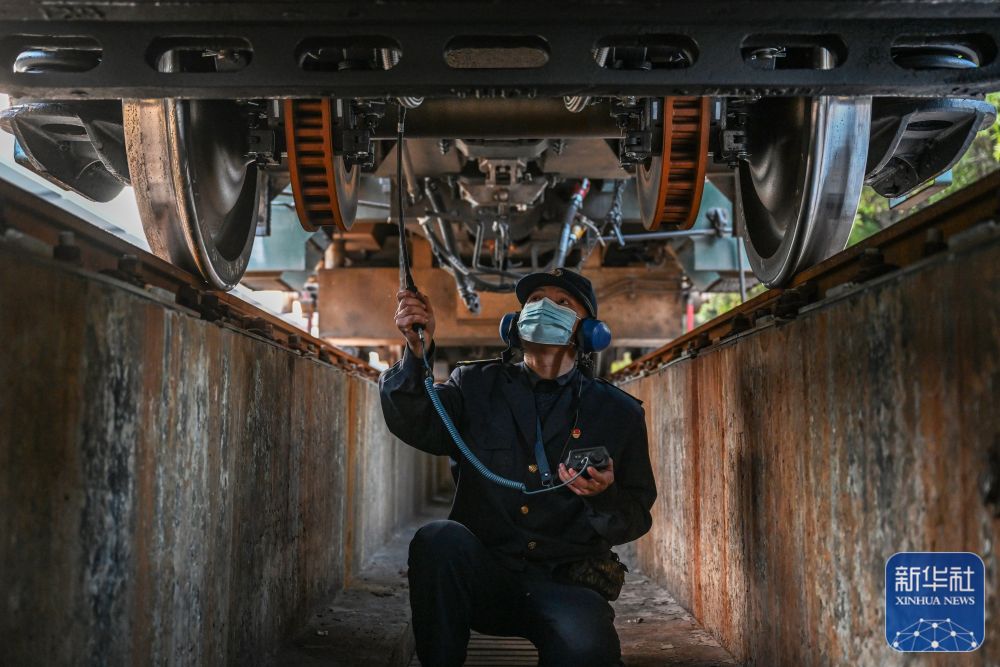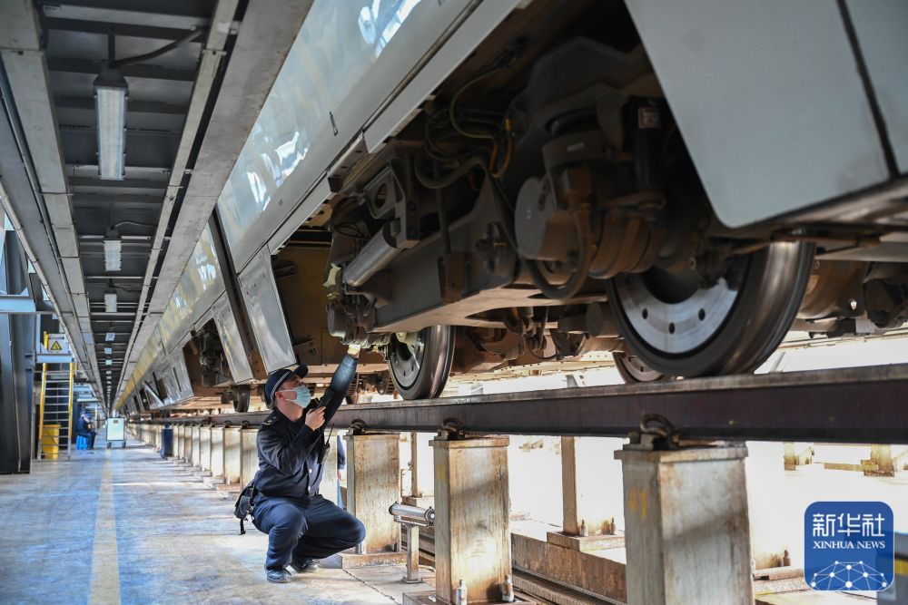 春运期间,在中国铁路南昌局集团有限公司福州车辆段和动车段内,工作人员对绿皮火车、高铁动车等多种车型进行检修、维护。“火车医生”对列车进行全方位排障,确保春运期间列车运行安全。
