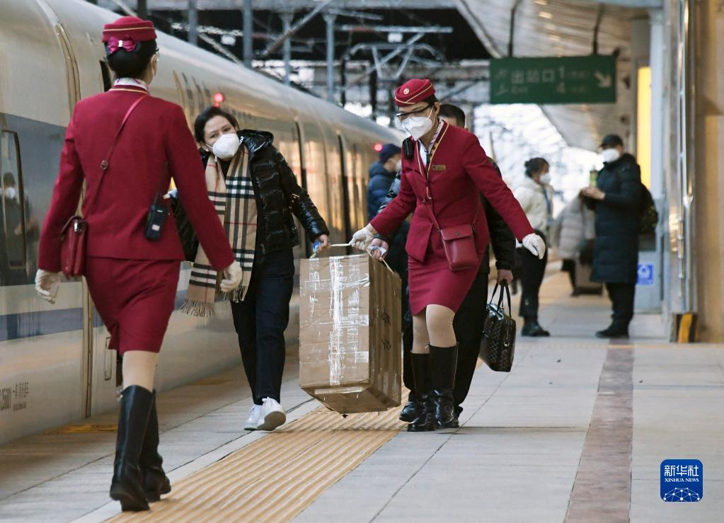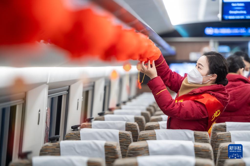 祖国西北角,乌鲁木齐站装点一新,喜庆的窗花、大红的灯笼和中国结为踏上旅程的人们带来暖意;西南山区,复兴号“绿巨人”在新成昆铁路上飞驰,彝族列车长阿衣布卡带来“库史木撒”(新年好)的问候,让车厢内欢声笑语;华南暖冬里,高铁枢纽大站广州南站,人潮涌动的火热场面再次重现,旅客手上拎着大包小包,洋溢着回家的喜悦……