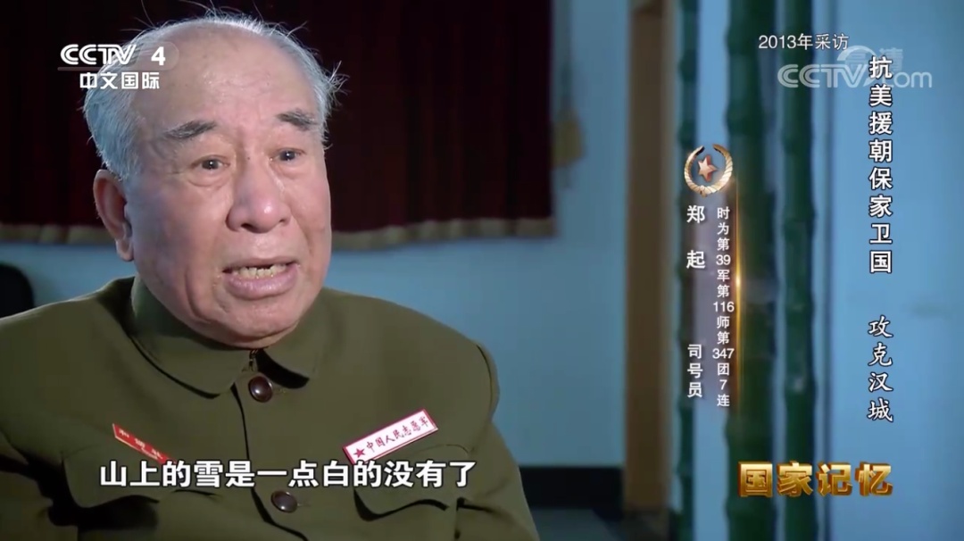 “敌人向山头开了将近5000发炮弹,把山上碗口粗的树干都炸没了,山上的雪是一点白的没有了,我们想找一块白雪解解渴都找不到,到处是炮弹坑。”