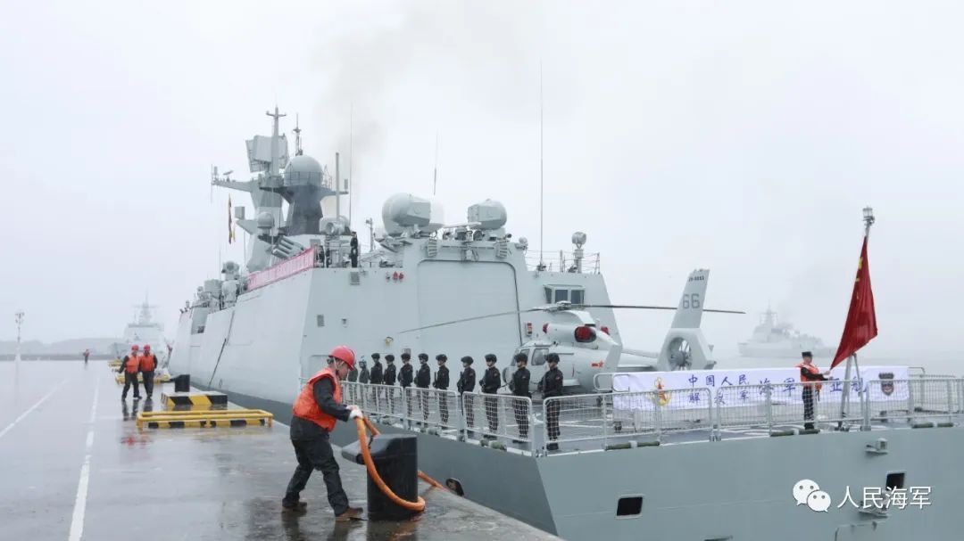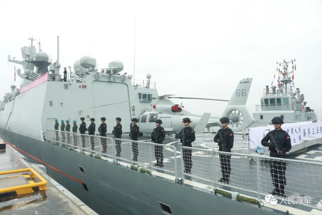 1月10日上午,中国海军第43批护航编队从湛江某军港解缆起航,奔赴亚丁湾、索马里海域,接替第42批护航编队执行任务。