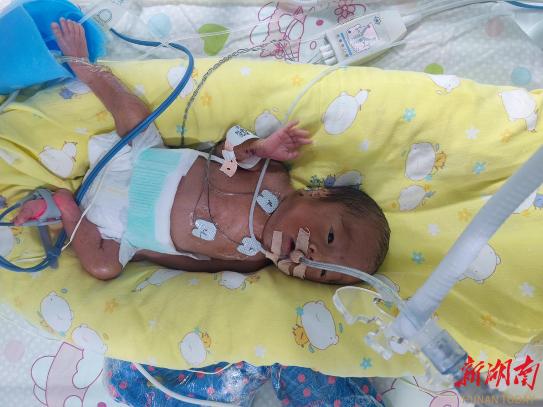 2022年9月15日,长沙市妇幼保健院迎来一例24周零2天超早产儿的诞生,体重只有720克。母亲由于宫颈机能不全,胎儿不得不提前娩出。由于胎龄太小,宝宝出生后即出现呼吸困难,皮肤青紫、自主呼吸微弱,病情十分危急。