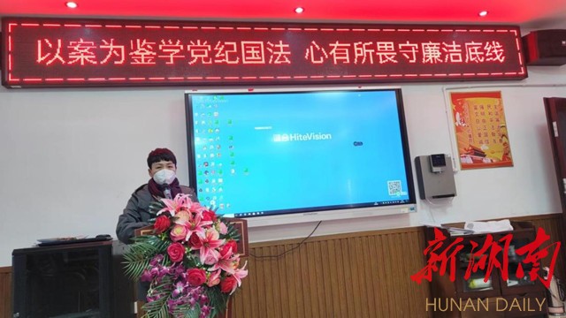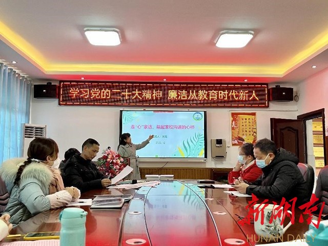 学校校长钟海红围绕如何贯彻落实党的二十大精神,结合湖南省教育厅通报的师德师风典型案例,向全体教师们进行了廉政警示教育,典型案例涉事教师均受到严肃处理,反映出各地各校深入落实教师职业行为十项准则,旗帜鲜明查处师德违规问题的坚决态度。同时,这也给全体教师敲响警钟,让老师以案为鉴学党纪国法,心有所畏守廉洁底线。