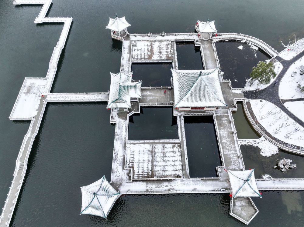 1月15日拍摄的安徽省铜陵市天井湖雪景(无人机照片)。新华社发(过仕宁 摄)