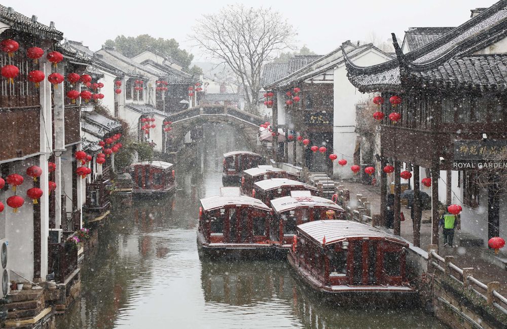 1月15日拍摄江苏苏州山塘古街雪景。新华社发(杭兴微 摄)