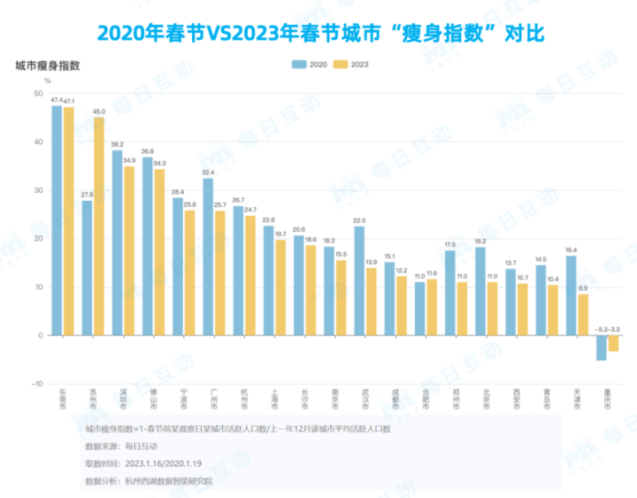 2023年春节东莞“瘦身”最快,重庆明显“增重”