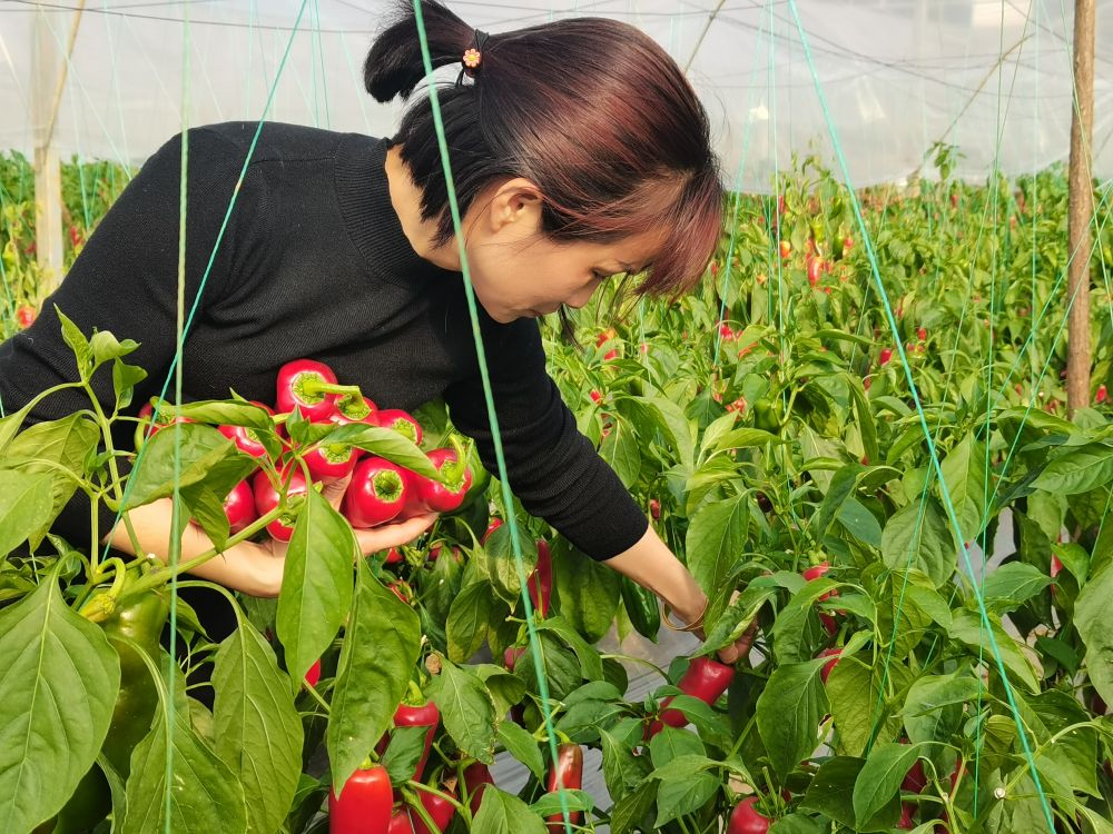 当地群众在汨罗市罗江镇蔬菜种植基地采摘红椒。(受访者供图)