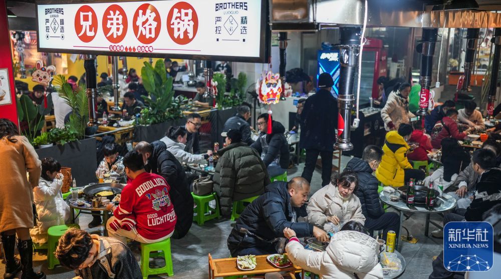 1月23日,人们在贵州省贵阳市南明区“青云市集”品尝特色美食“烙锅”。新华社记者 陶亮 摄
