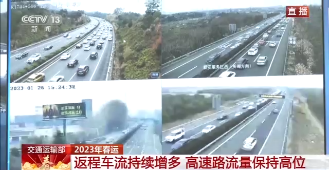从今天早上开始,全国高速公路流量持续上涨,各地返程车流较多,从数据上看,昨天一天已经接近5070万辆,达到历年春节同期最高峰。今天截至中午12时,公路网的流量已经突破了2300万辆。预计未来两天,全国路网还会呈现一个持续增长的态势。