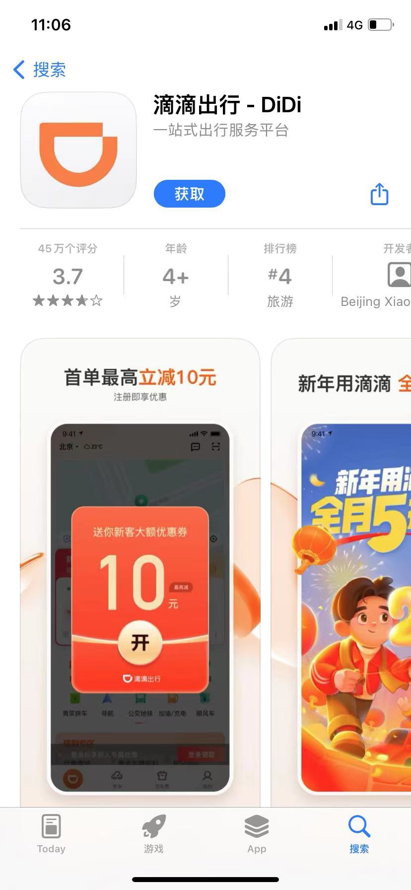 目前,滴滴出行APP内正在举行“新人礼”“新年用滴滴”等优惠活动。