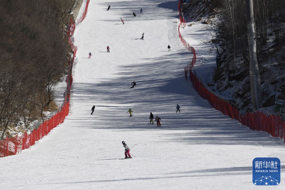 ↑1月27日,滑雪爱好者在河北省滦平县一处滑雪场滑雪。新华社发(王立群 摄)