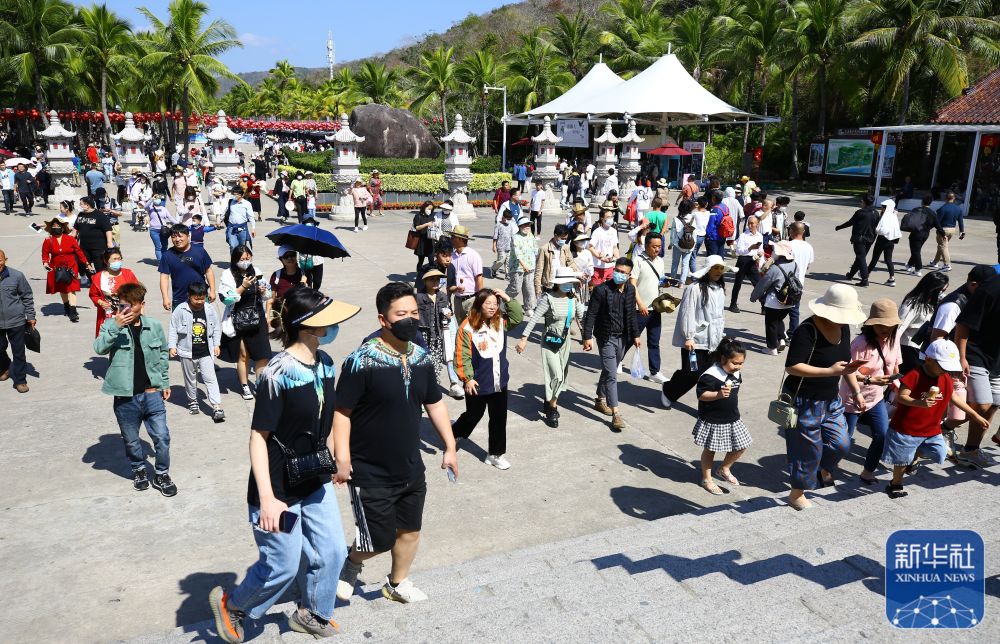 ↑1月25日,海南省三亚市南山文化旅游区游人如织。新华社发(陈文武 摄)