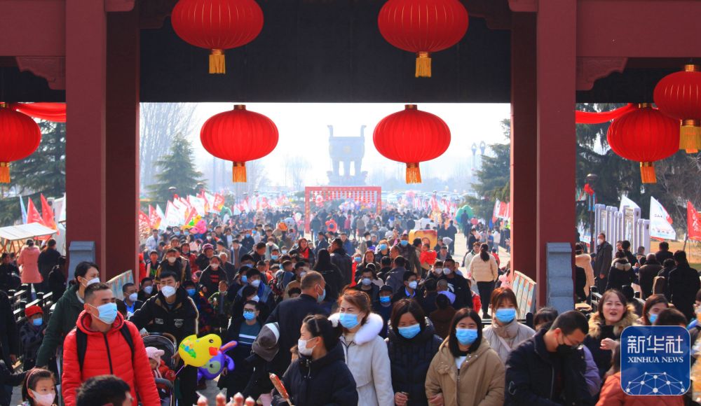 ↑1月22日,游人在山东省临沂市沂蒙山龟蒙景区新春庙会上游玩。新华社发(武纪全 摄)