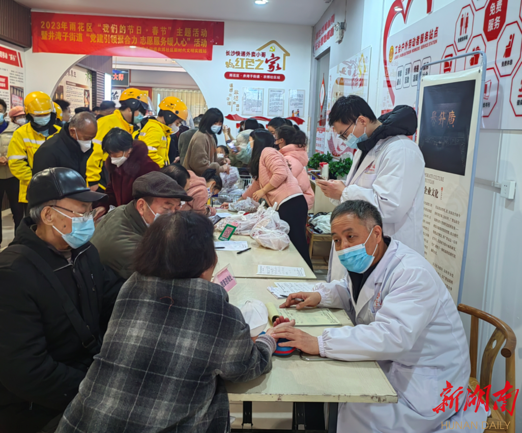 这是党建聚合力工程下,“两新组织”联手社区做好疫情防控的缩影。湖南广誉远国医馆有限公司工作人员细心叮嘱用药注意事项,答谢默默奉献的民生保障团队、一线社区工作者、防疫人员等,为他们送去健康和温暖。此外,广誉远国医馆名老中医李松林现场把脉问诊,为居民群众答疑解惑,解决疫情当下如何康养好身体的需求。