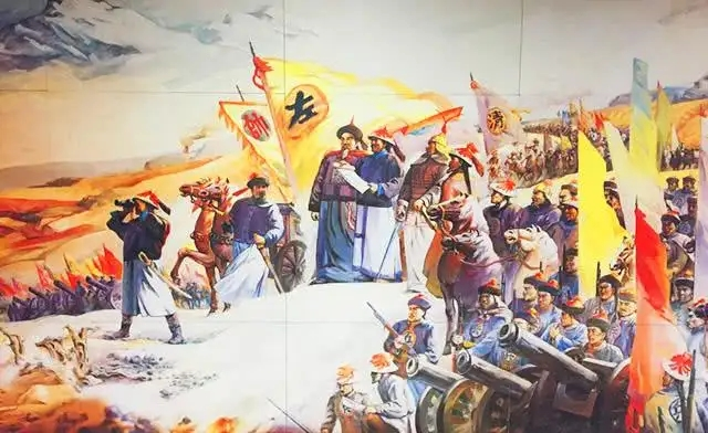 左宗棠用一年半的时间筹措军饷,积草屯粮,整顿军队,减少冗员,增强军队战斗力。1876年4月,黄沙漫漫,旌旗猎猎,左宗棠肃州祭旗,亲率十万湘军兵分两路,挺进新疆。为了解决饮水问题,部队以千人为一组,隔日开拔。两路人马翻越天山九曲险道,8月两军会合,南北夹击,一举拿下乌鲁木齐,荡平北疆。