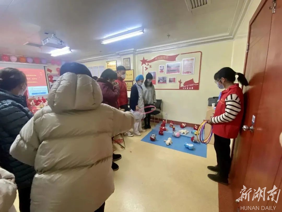 “我要套那个红色兔子给我孙女”“今天我生日,我想要自己套中那个小黄鸭”……在新年套圈游戏中,欢笑声欢呼声一浪高过一浪,患者与家属玩得不亦乐乎,暂时忘却了病痛带来的烦恼。当天正值一位患者家属生日,患者、医护人员、医务社工一起为她唱生日快乐歌,将现场气氛推向高潮。