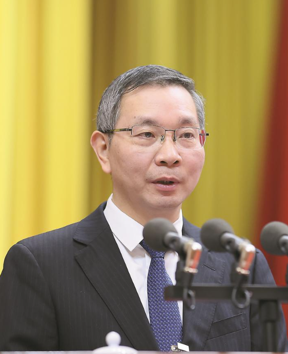在株洲市第十六届人民代表大会第二次会议上,陈恢清作政府工作报告。 株洲日报全媒体记者/易翔 摄