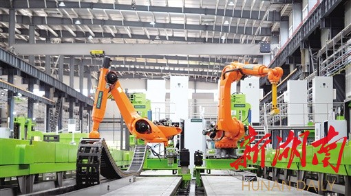 走进中联重科常德塔机智能工厂,只见机器人在车间里来回穿梭,机械臂在生产线上灵活舞动。仅18分钟,一台塔机便成功下线,高科技、高效率、智能化程度让人不禁惊叹。