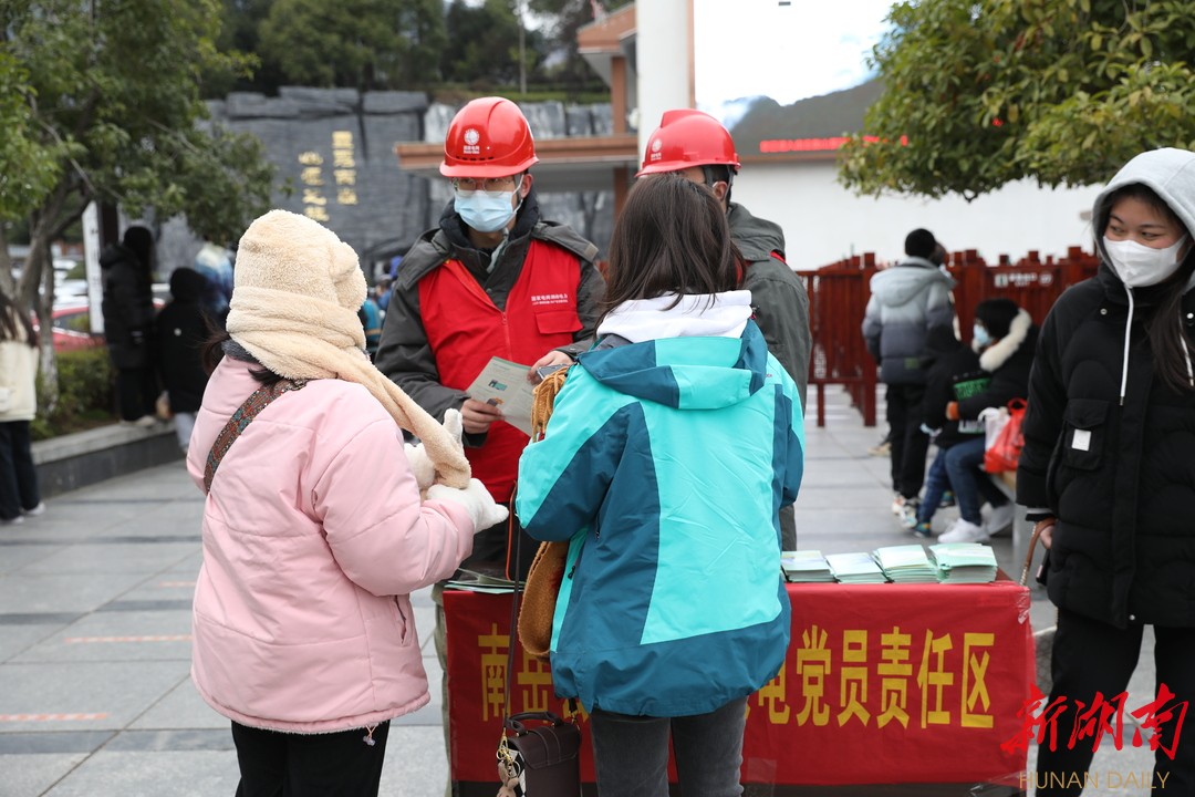 “我们要高质量为客户用电做好服务保障,尽最大努力不影响游客出门旅游的心情。”去抢修的路上,过鑫叮嘱一同前往的“红马甲”们。为了能快速响应客户需求,在大年三十到初六期间,该公司在南岳全域旅游服务中心和天下南岳牌坊处设立了春节保电党员责任区,蹲守在党员责任区的“红马甲”们可以走路前往抢修现场,避开拥堵路段,极大缩短抢修时长,同时,也义务为过往游客提供暖心的咨询服务。