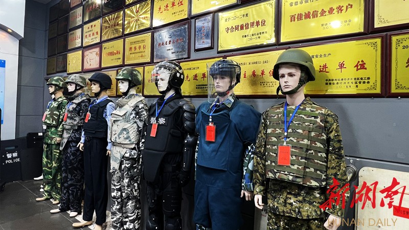 在湖南中泰特种装备有限责任公司防弹头盔科研室,科研人才杨恒正在和同事就新型头盔的改良创新进行讨论。他说:“这种方伦头盔比较重,用超高分子量聚乙烯材料作为里面的内衬,由方伦材料作为外面的防弹层,这样既可以做到轻薄,又可以保证防弹效果。”话毕,其他同事纷纷点头。