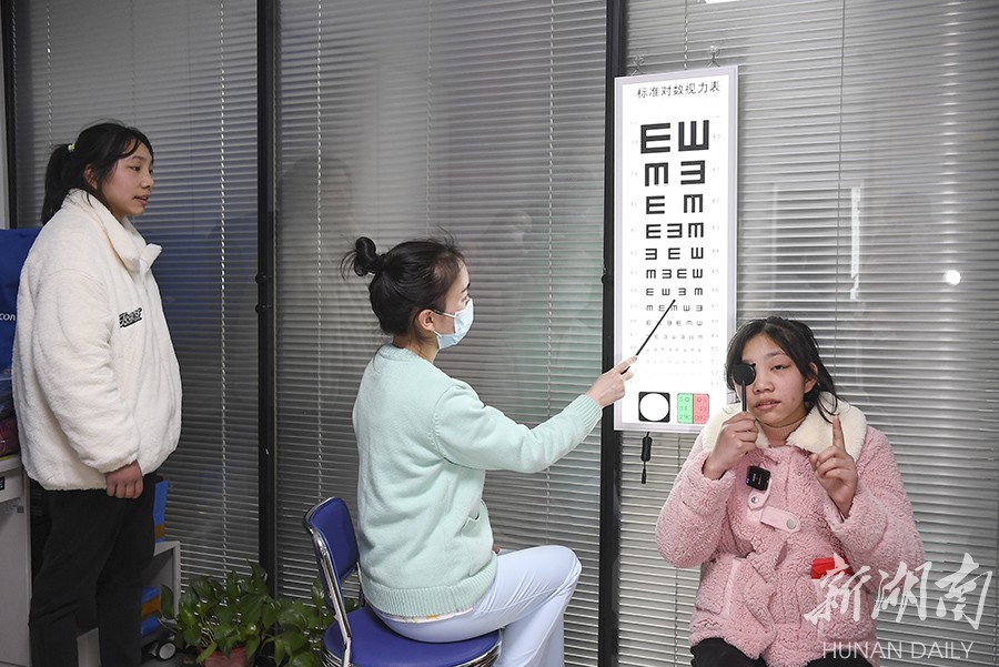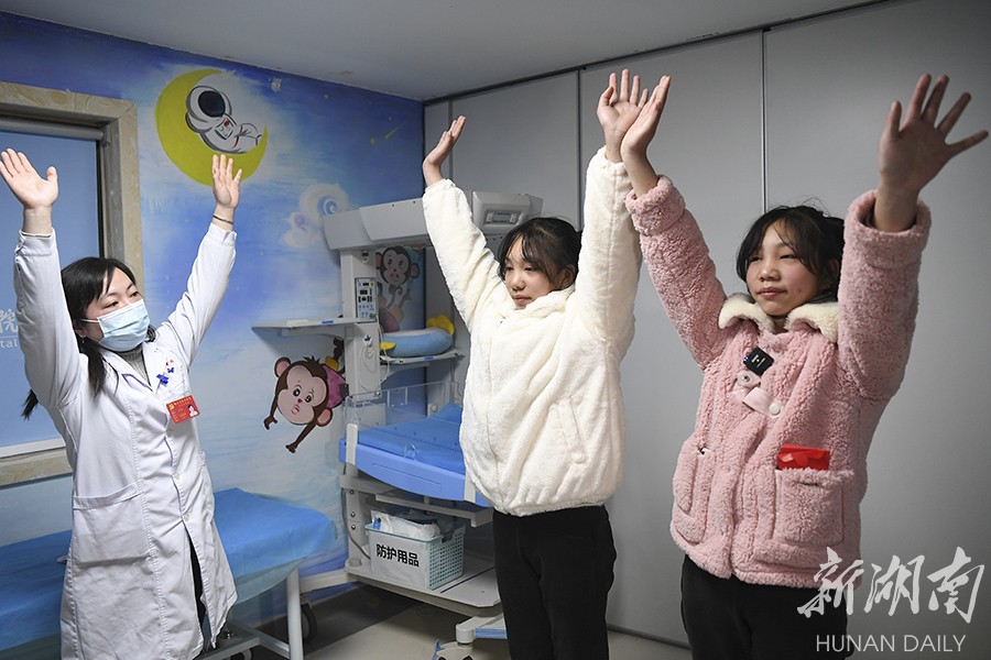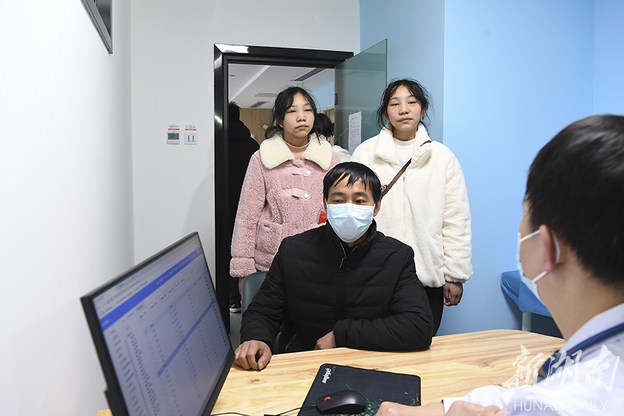 1月31日,湖南省儿童医院儿童健康管理中心,即将年满14岁的罗红(左)、罗兰来到医院体检。