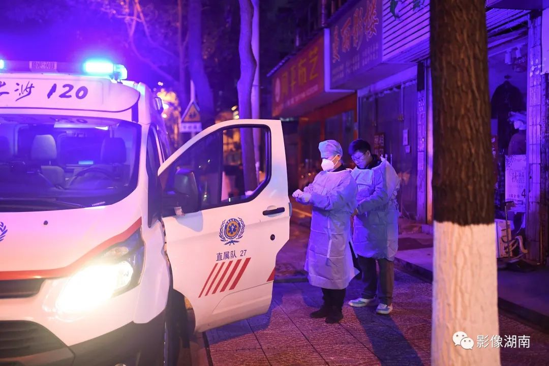 1月19日晚8时许,长沙市120急救中心直属站, 接到转运命令后,值班医护人员在同事的协助下,穿好隔离服准备出发。