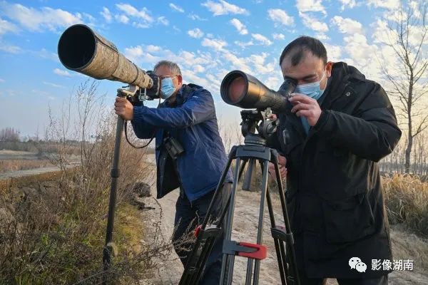 ▲1月8日,沅江市环保志愿者协会会长李剑志(左)带领志愿者在大通湖国家湿地公园进行鸟类调查监测。