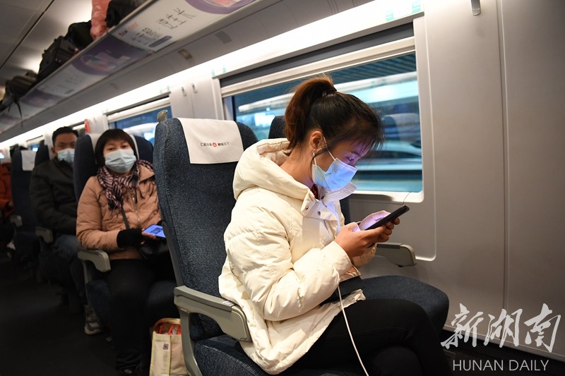 1月29日,高铁长沙南站,乘客坐上了免费的高铁列车。湖南日报全媒体记者 辜鹏博 摄