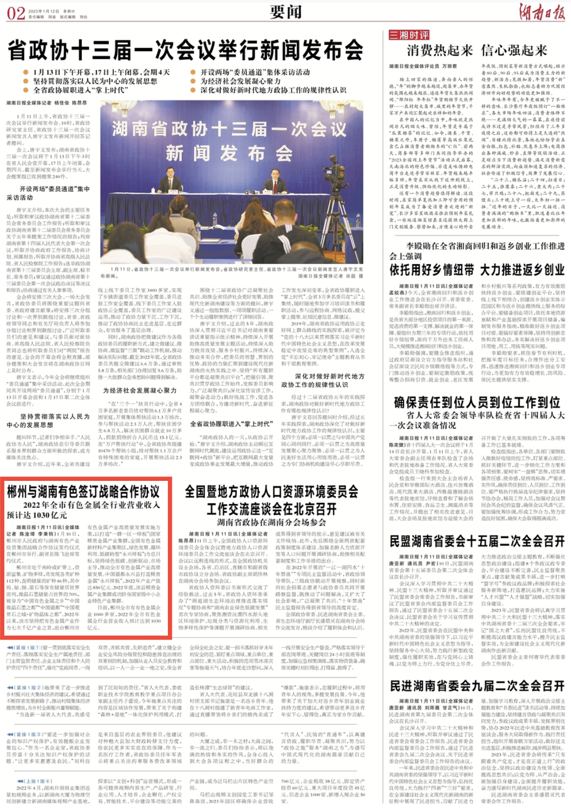 目前,郴州全市有有色金属企业1000多家,2022年全市有色金属全行业营业收入预计达到1030亿元。