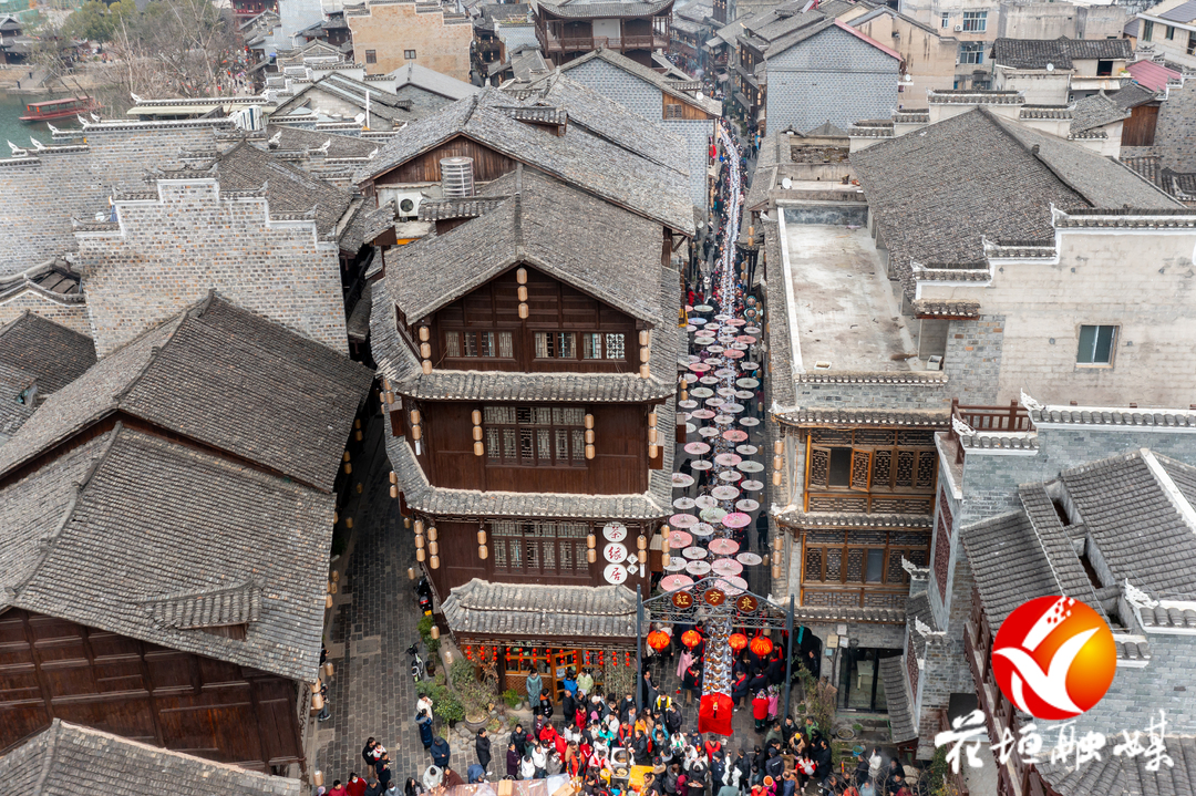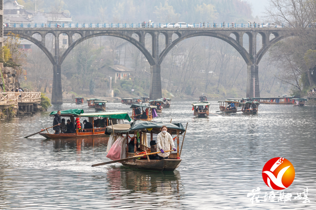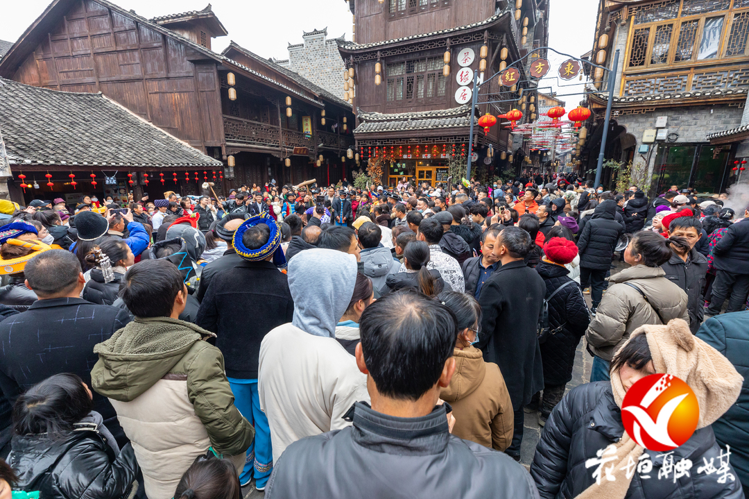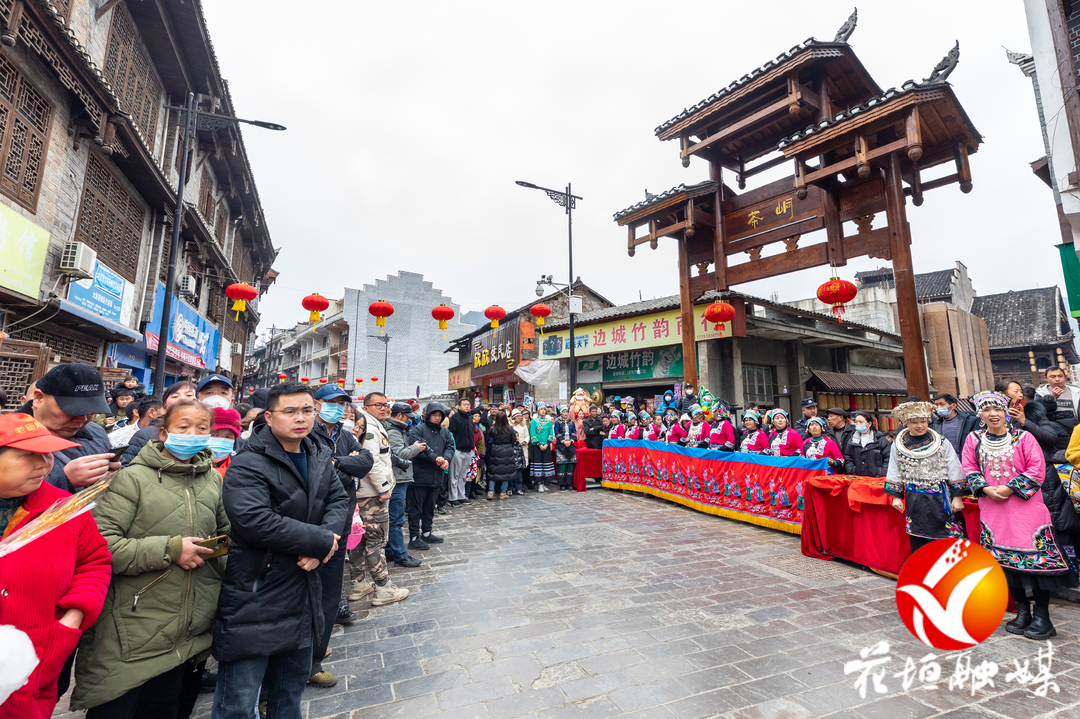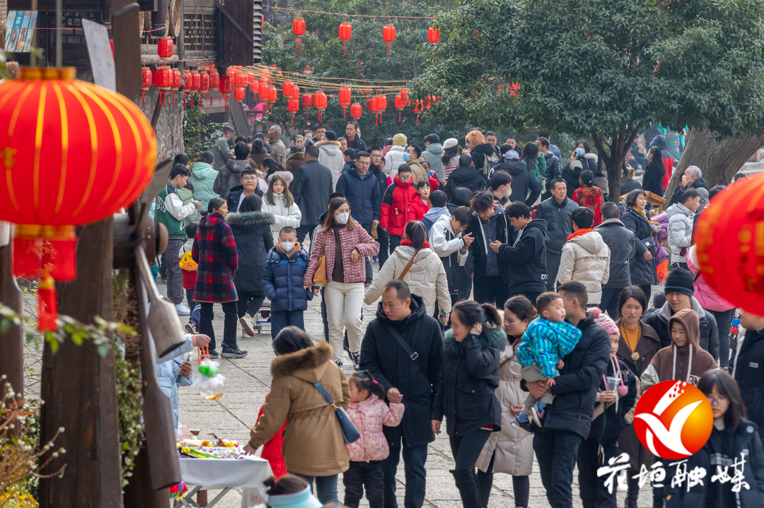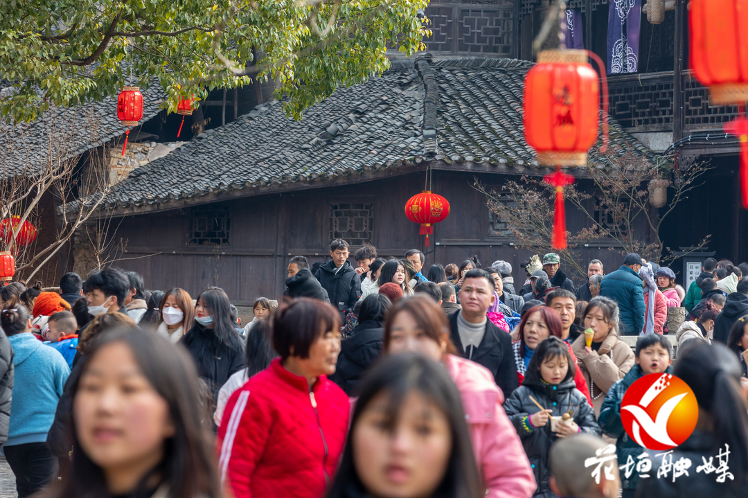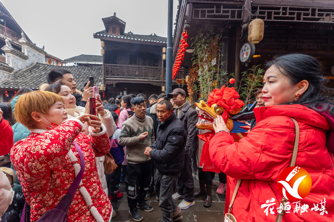 新湖南客户端1月26日讯(花垣融媒记者 田仁峰 张晗 叶紫子萌 摄影 宋显金)1月25日,正月初四,湘西土家族苗族自治州花垣县边城茶峒景区旅游热度持续升温,游客络绎不绝,开启“人从众叕”模式。