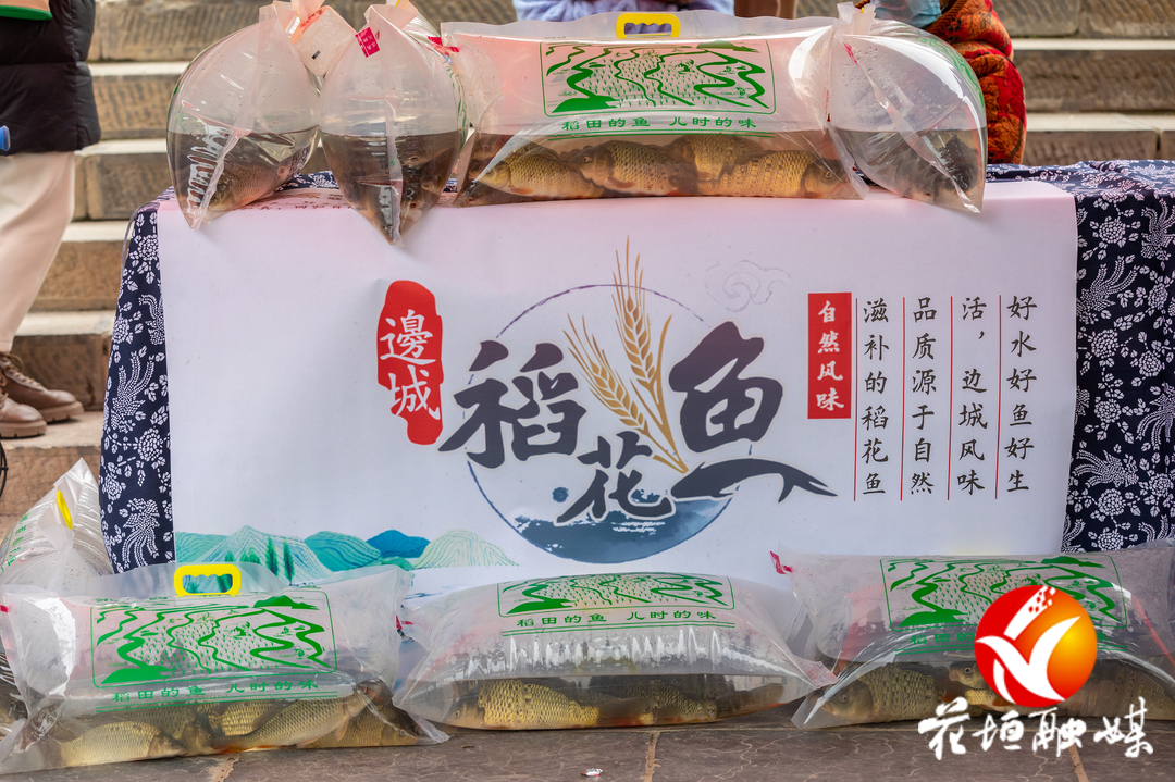 在边隘广场,一排排特色展台前围满了前来观光的游客,极具地域性民俗文化的苗服、苗饰琳琅满目,令人们目不暇接,腊肉、香肠、黄金茶、黄金酒、黄金鲫等特色土味农产品更是备受大家青睐。