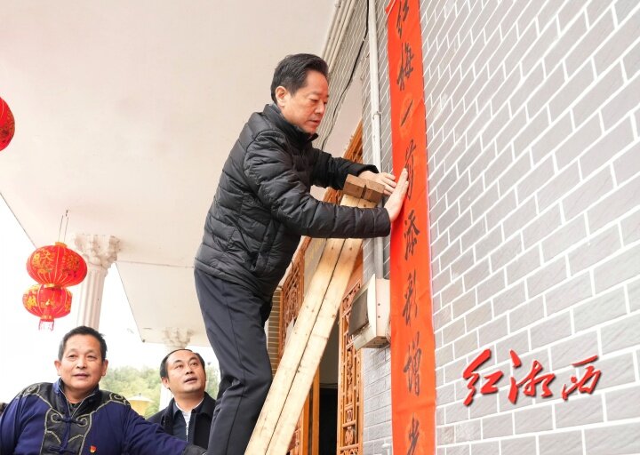 西米村位于张家界至凤凰的旅游黄金线上,区位优势十分明显。近年来,村里大力发展稻米和乡村旅游,村容村貌和村民收入都有了大幅度提升。虢正贵走进村里,了解产业发展、人居环境整治、乡村文明创建等情况,叮嘱村干部做好疫情防控、森林防火、安全生产等工作,让乡亲们度过一个安全健康、欢乐祥和的春节。在向功铭家的院坝里,乡亲们聚在一起挂灯笼、打糍粑、蒸年肉、炸油粑粑,每个人脸上都挂着幸福笑容。虢正贵向乡亲们拜新年、聊收入、话发展,和大家一起贴春联、吃年夜饭,祝乡亲们新年快乐、万事如意、阖家幸福,日子越过越红火。