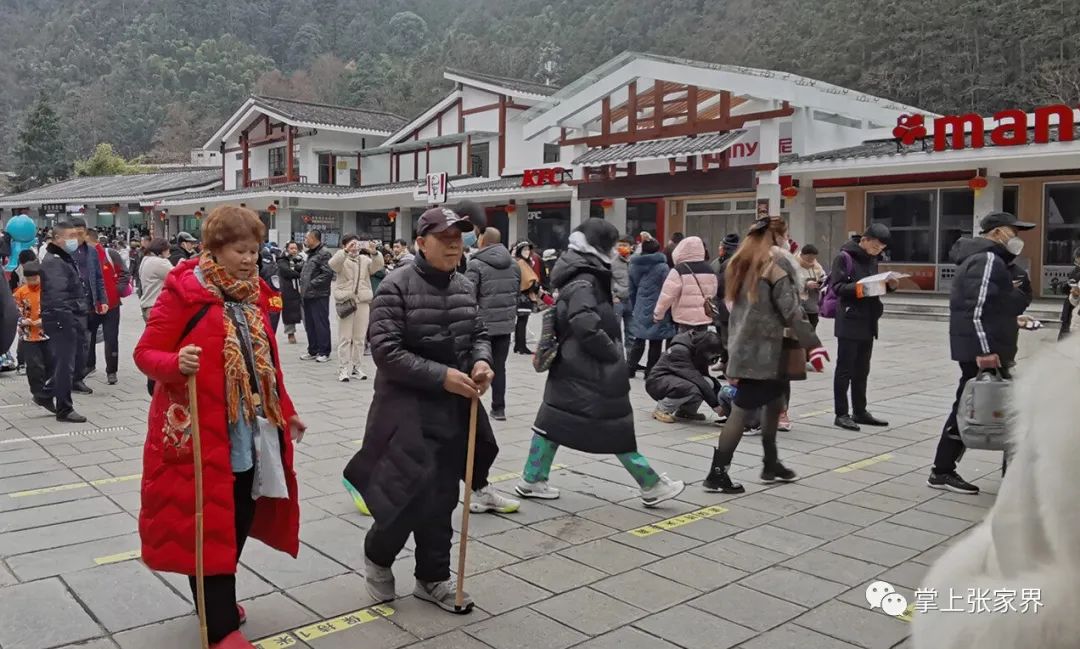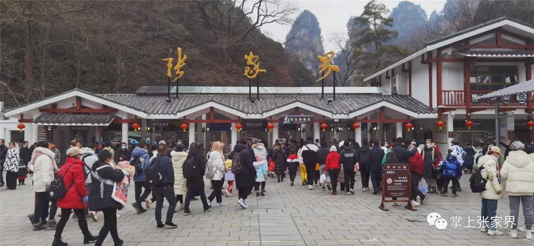 1月26日10时许,张家界森林公园门票站前,游人如织,手持游客名单的导游在不断地呼叫,带着山东、广东等不同地域口音的游客声音在传递。孩童们,则在尖叫着欢呼着奔跑着。